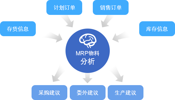 匯總選擇時間段內所有銷售訂單及計劃生產需求,統一分析下達采購、委外及生產建議。采購建議可按存貨、供應商等條件進行合并。