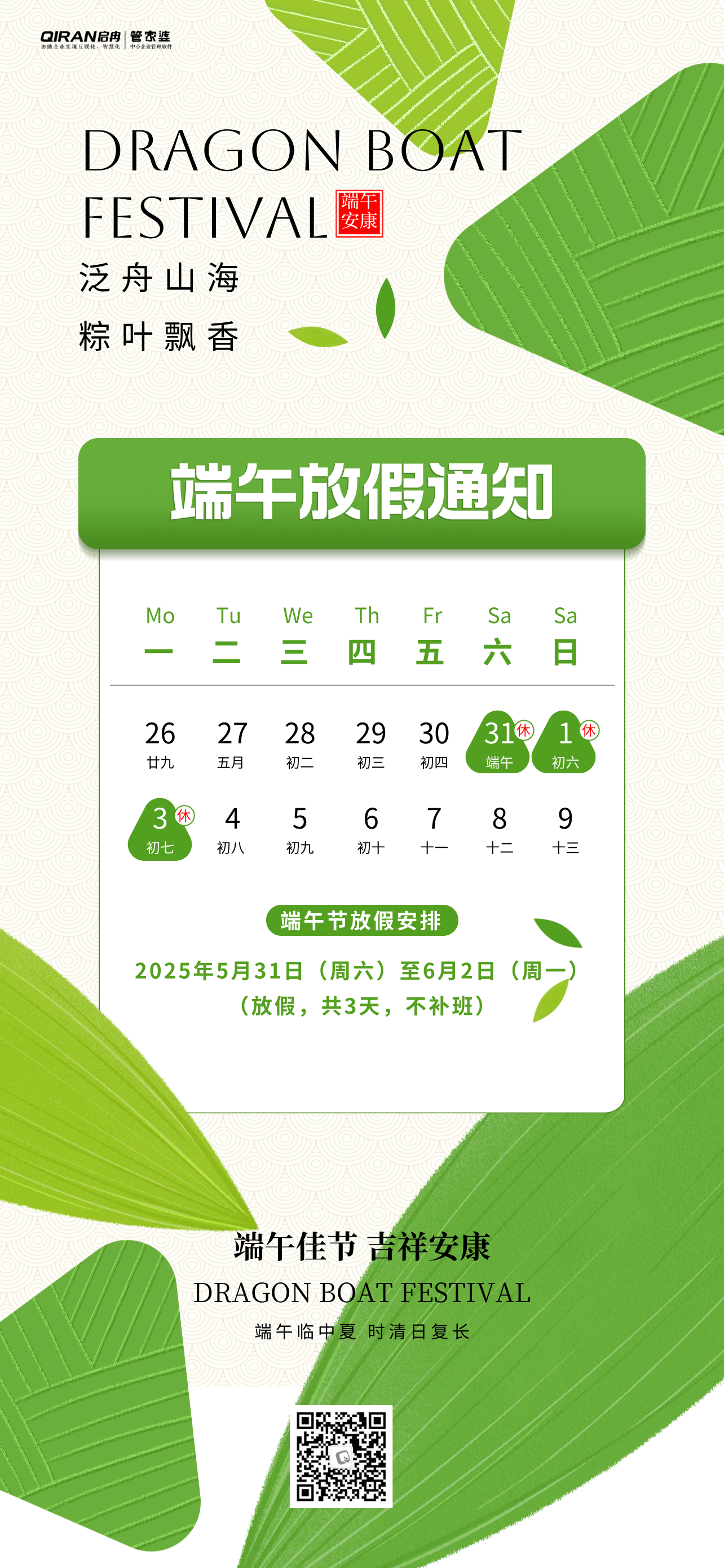 公告 | 啟冉軟件端午節放假通知