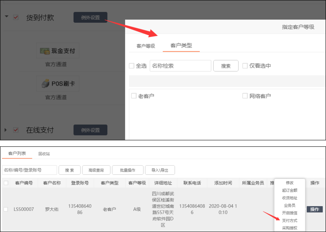 13.新增按客戶等級、類型或按單個客戶進(jìn)行支付方式例外設(shè)置