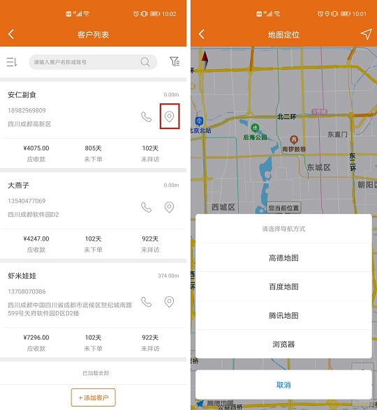 業(yè)務(wù)員拜訪出勤可直接導(dǎo)航到客戶地址,提升業(yè)務(wù)員拜訪客戶體驗